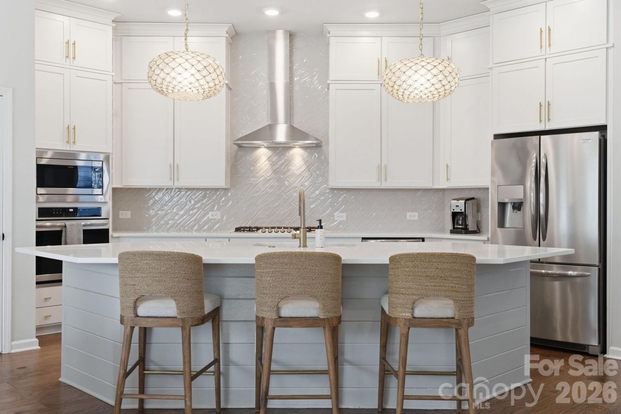 Beautifully designed 2,429 sq ft luxury duet in Villa Heights featuring 10' ceilings, curated finishes, and exceptional storage rarely found in duet living. The open-concept main level showcases a gas fireplace, built-in drop zone, and a thoughtfully upgraded kitchen with gas cooktop, beverage cooler, dedicated pantry, and additional upper cabinetry.Custom details including board and batten molding, beadboard accents, and designer lighting elevate the home throughout. The dining space features a striking accent wall, creating a true focal point for entertaining.Upstairs, the spacious primary suite offers a tray ceiling, custom walk-in closet system, and a well-appointed bath with oversized soaking tub and private water closet.Enjoy the covered rear deck overlooking trees and a peaceful stream, along with a gas line stub for future outdoor grilling. A standout feature is the tall, walkable crawl space with vapor barrier, providing exceptional storage not typically found in townhomes.Located just minutes from NoDa, Plaza Midwood, and Uptown.